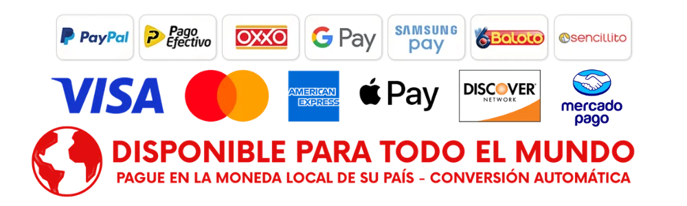 Aceptamos tarjeta de débito, crédito, yape, Nuquí, PSE, mercado pago y PayPal. También puedes pagar en efectivo en tiendas autorizadas dependiendo de tu país (como OXXO en México).