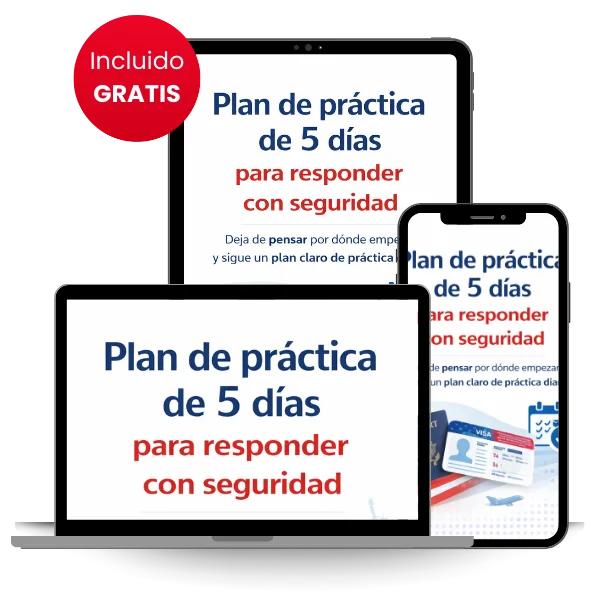 Ten en tus manos las preguntas más comunes y sus respuestas en inglés y español para no fallar en tu entrevista de visa AMERICANA, listas para decir sin dudar y sin nervio el día de tu entrevista.
